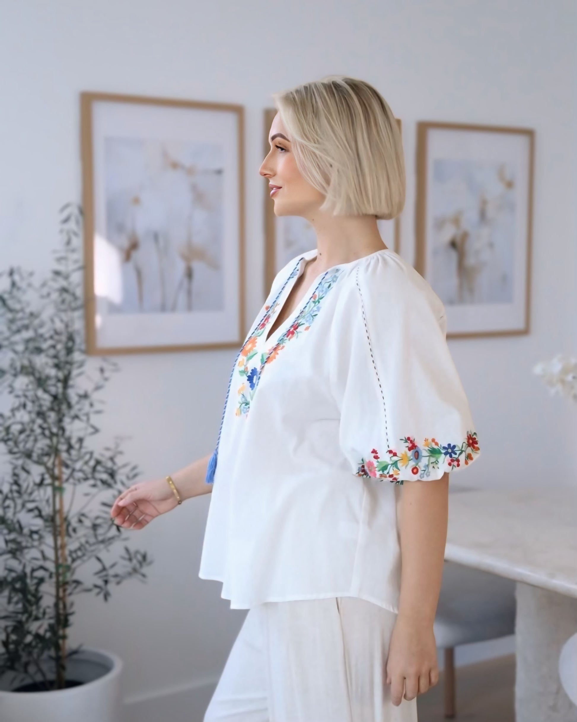 Our Amanda top is ideal for warm weather days, casual outings or your next vacation. Style it with sandals and delicate earrings to complete the look.