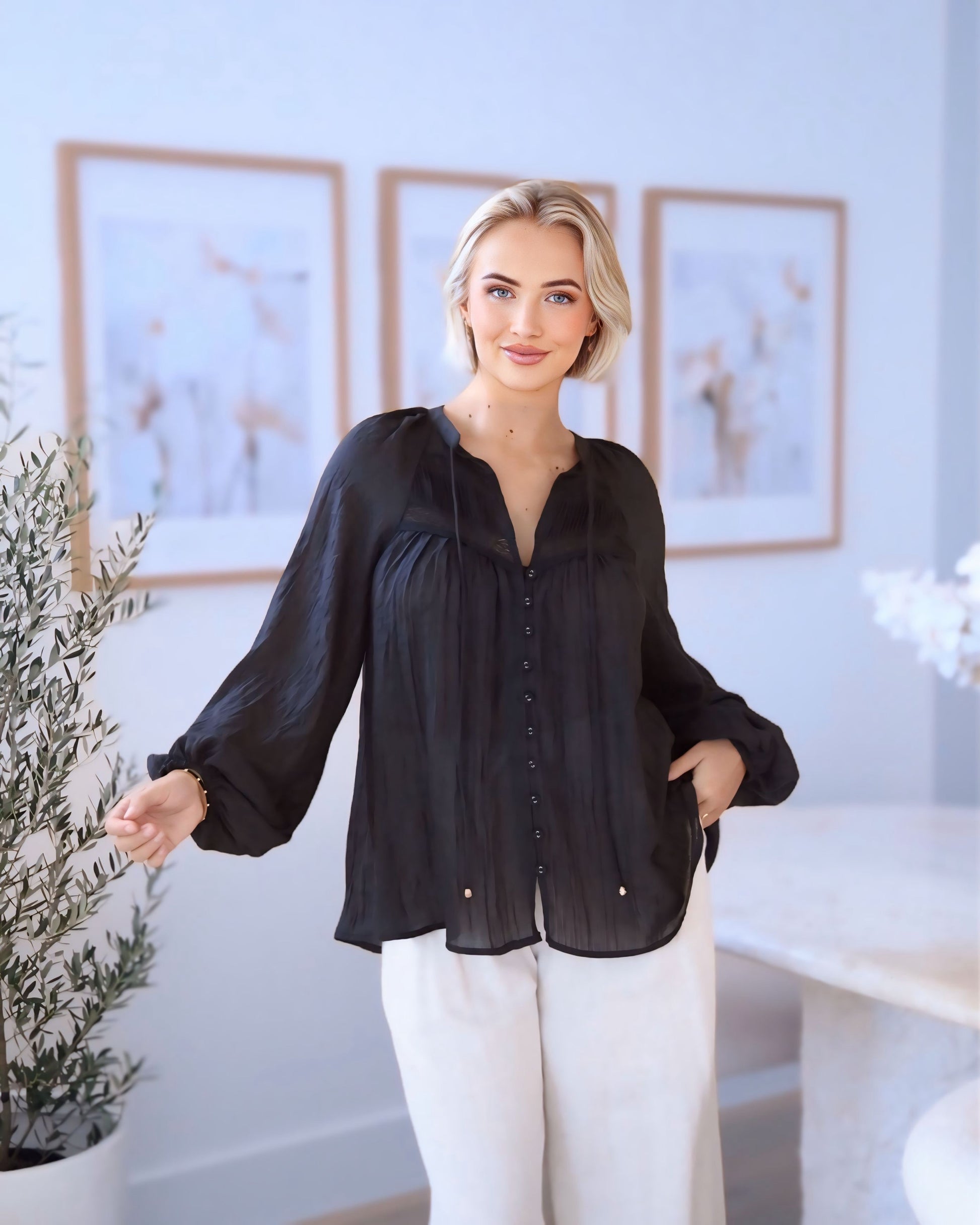 Silvia Boho cotton top featuring button front